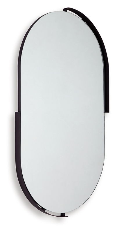 Update your home or office with contemporary appeal. This accent mirror is subtly embellished, with black metal accents bordering its striking oval shape. Make a statement, curate a quirky collection, or use it to make your space appear larger—the design ideas are endless.