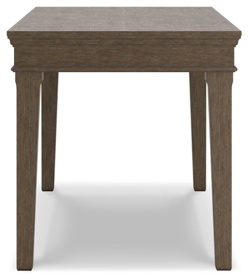Make a style statement with this home office desk. Its traditional design is updated with an on-trend weathered gray finish and wire-brushed texture. The desk's large tabletop makes for a well-organized workspace.