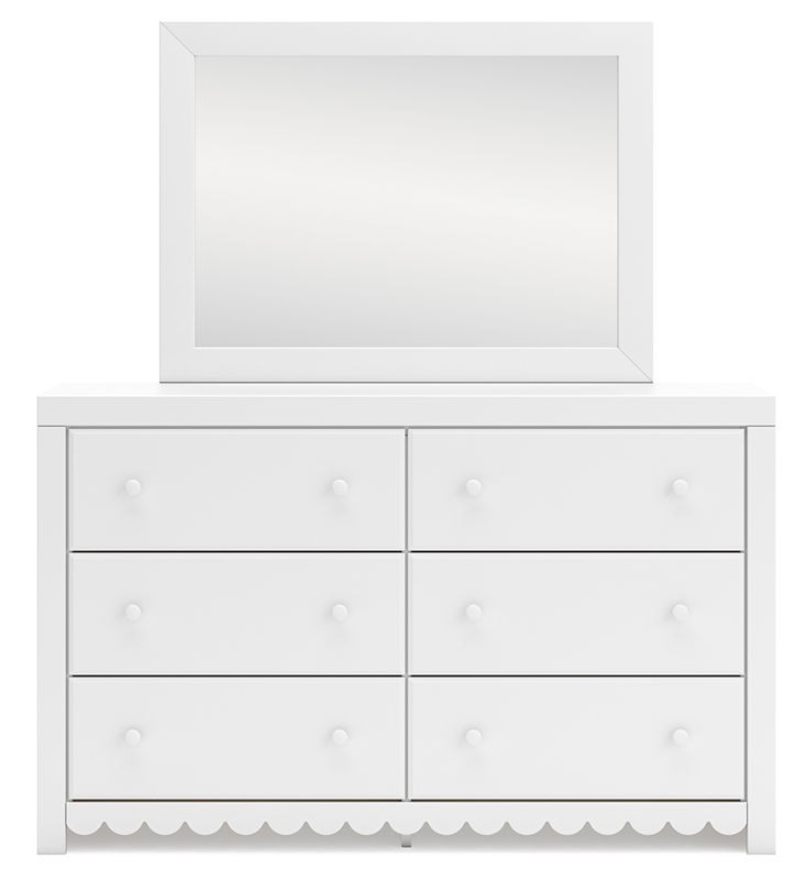 Make getting ready for the day or bed that much more magical with this dresser with mirror. Charmingly cute with its scalloped detailing, it appeals to both her sense of playful whimsy and your love for modern design. And the bed's crisp white finish gives you the versatility to pair it with existing decor.