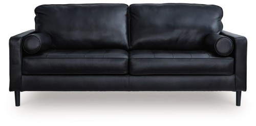 This sofa embodies timeless mid-century elegance with its linear design, sleek track arms and tapered legs. Genuine leather in the seating area adds a luxurious touch to the overall look. Experience endless style opportunities for today's living spaces.