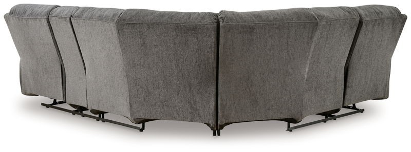 Cozy comfort is on the rise with this reclining sectional. So velvety soft, the trendy pewter-hued chenille upholstery is made for everyday indulgence. Overstuffed and stylishly wrapped, the sumptuous cushions and pillow top armrests display the comfortable side of contemporary. A padded center console with hidden storage and dual cup holders blends form and function. And with one easy pull, you're on your way to endless relaxation with plenty of room to stretch out.
