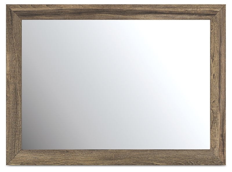 Casually cool style and clean lines go hand in hand with this bedroom mirror. A weathered brown finish over replicated oak grain creates an easygoing vibe, setting the scene in your restful retreat. The fuss-free, versatile piece can be mounted on a wall or dresser.